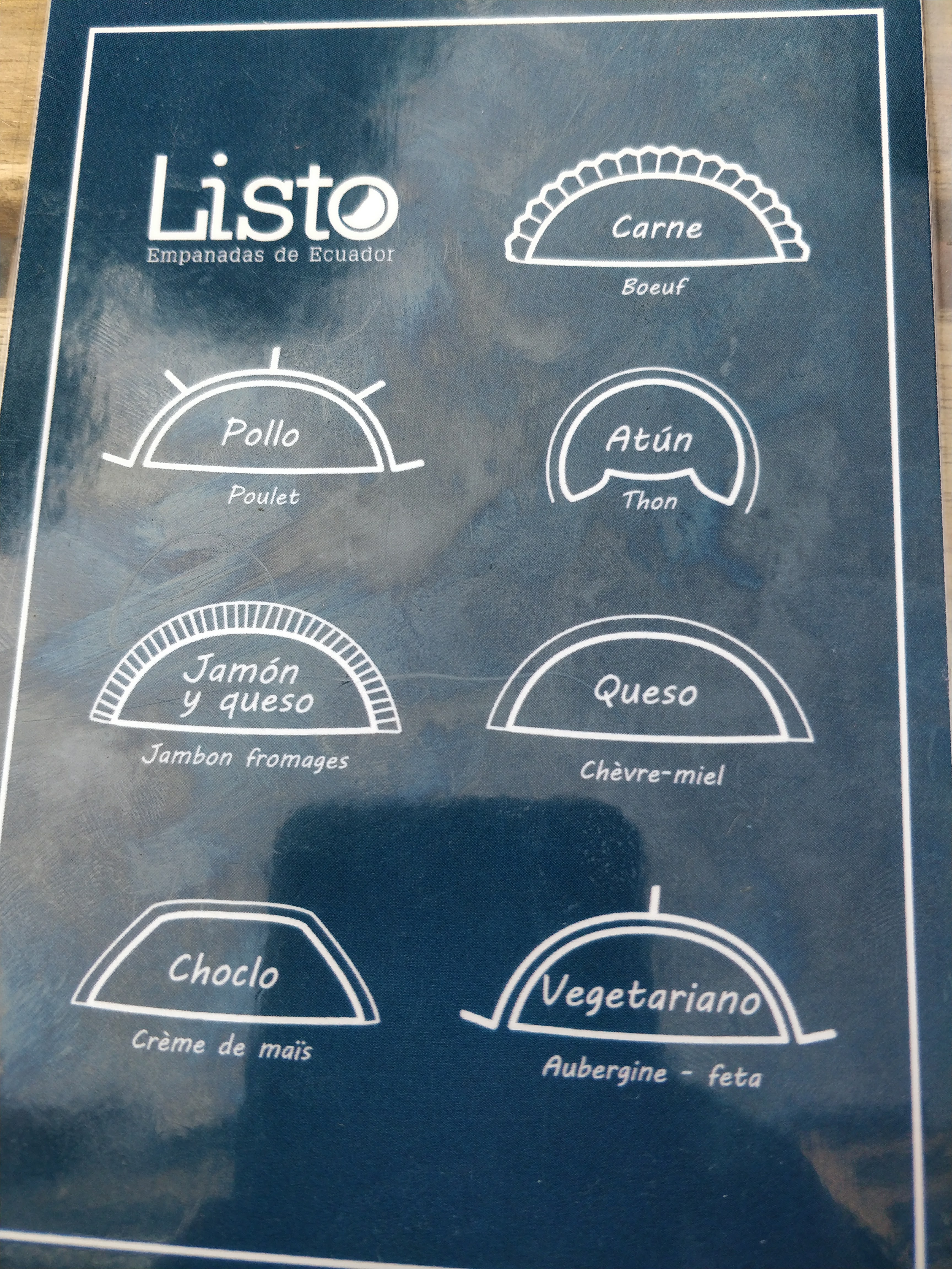 Posté le 25/09/2018 à 18:05"En ville un midi et avec aucune idée de où manger, j'ai tenté le Listo.... et gros gros coup de coeur. J'adore l'idée de un empanada = une forme particulière pour savoir à l'aide d'une petite carte ce qu'il renferme. Le menu à 6 empanadas est déjà copieux, mais j'ai tenté la panna cotta dulce de leche par gourmandise, et le goût est subtil mais ce qui en fait un dessert pas trop sucré, de quoi bien finir. Accueil vraiment bien,on prend le temps de nous expliquer le concept, prix plus que correct... je valide!!"